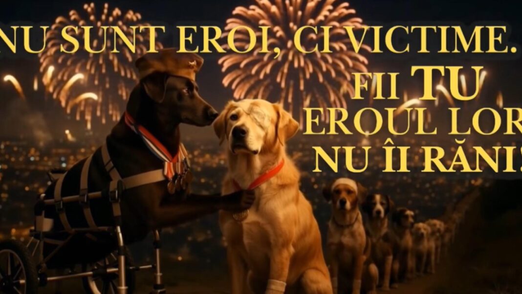 Mesajele care apar pe ecran subliniază impactul emoțional: „Este noapte. Cerul explodează în lumină. Dar în păduri, pe străzi, sub paturi și în adăposturi, cineva tremură. Animalele nu sărbătoresc. Ele doar încearcă să reziste. Pentru ele, această noapte nu este tăcută. Este plină de sunete pe care nu le înțeleg și de frici din care nu pot fugi.”