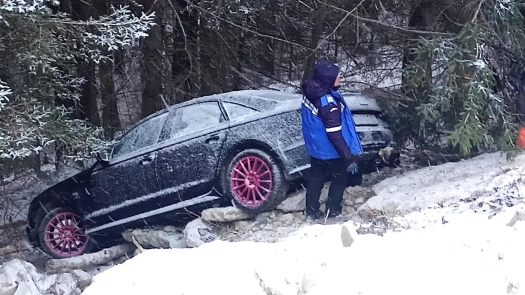 Potrivit informațiilor transmise de jandarmi, accidentul a avut loc din cauza unui strat de gheață ascuns sub zăpadă, care a provocat pierderea controlului volanului de către șofer. Mașina a derapat și s-a oprit în brazii de pe marginea drumului, suferind avarii serioase.