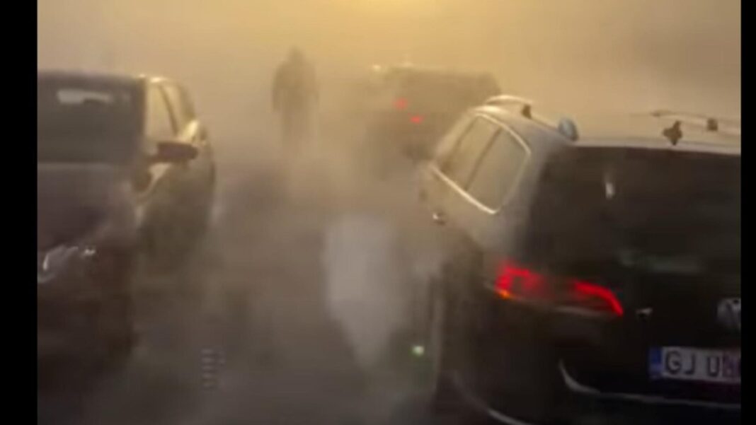 Traficul pe DN 67C a fost suspendat duminică după-amiază din cauza viscolului puternic și a vizibilității reduse, care făceau deplasarea imposibilă pentru șoferi. Vântul extrem a viscolit zăpada, reducând vizibilitatea aproape la zero.